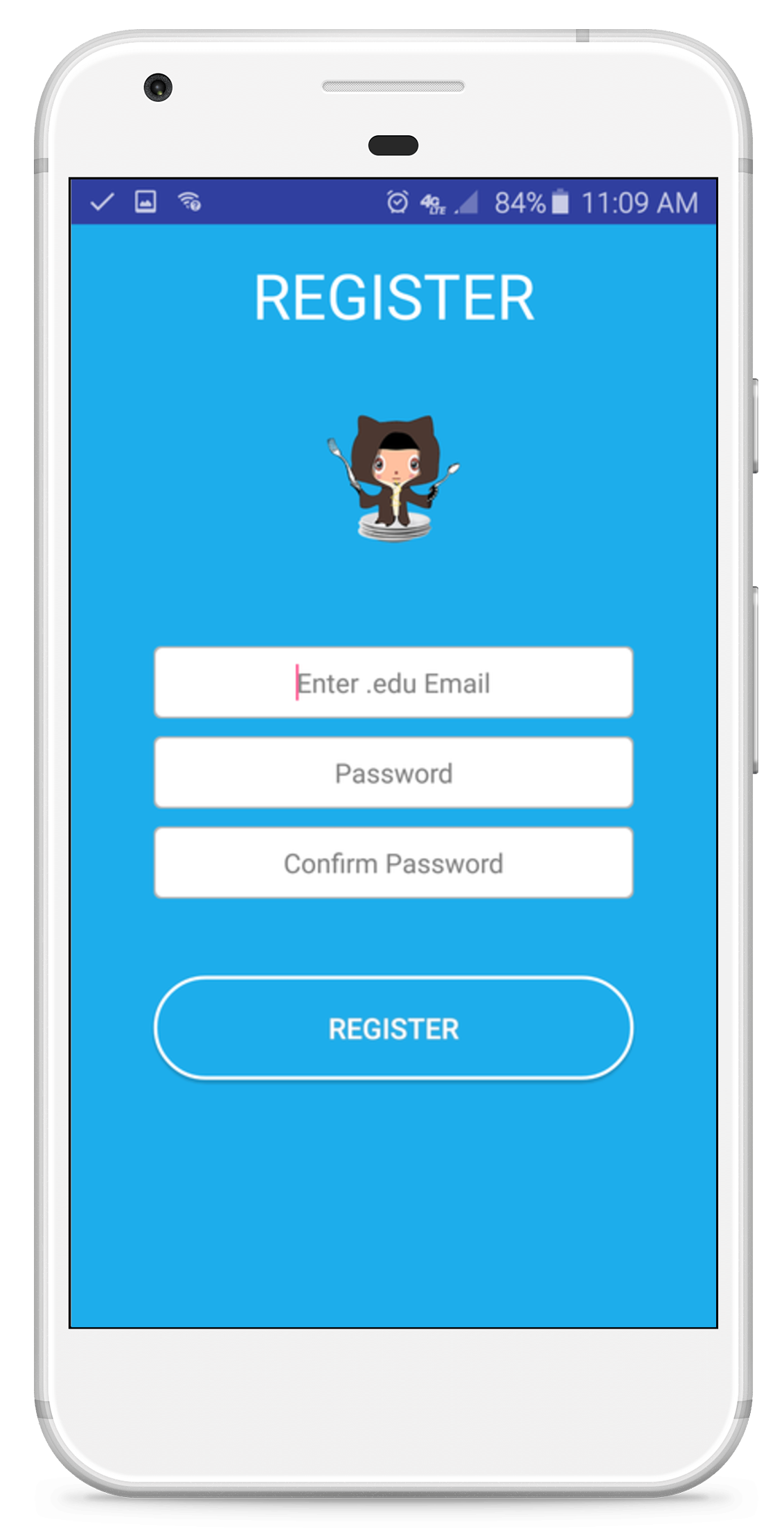Students who do not already have an existing account with FeedHub get an opportunity to register for an account. Creating an account gives students the ability to view nearby meals on their feed posted by other students so they are able to connect with them when they want to eat.